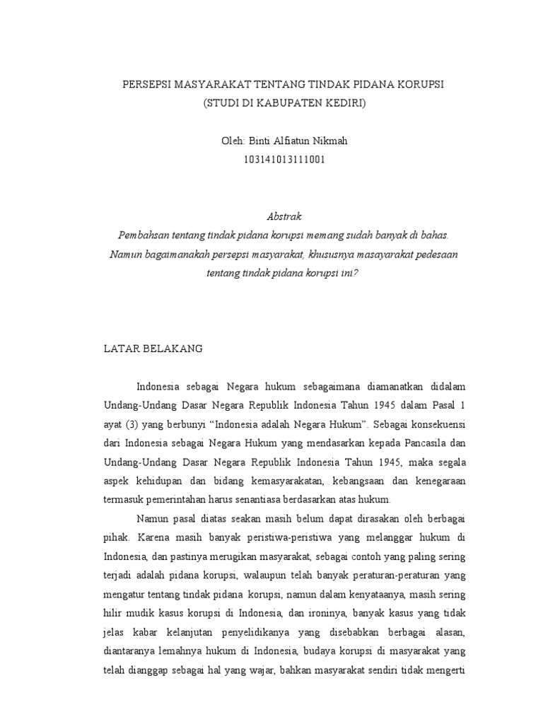 Tindak pidana korupsi sudah meluas dalam masyarakat baik dari jumlah kasus yang terjadi maupun jumlah kerugian terhadap keuangan negara maupun dari segi kualitas tindak pidana yang dilakukan semakin sistematis serta lingkupnya yang memasuki seluruh aspek kehiduapan masyarakat Evi Hartanti 2006. Contoh-contoh skripsi yang berkaitan dengan hukum pidana yang kami sediakan memiliki tema yang sangat bervariasi dan merupakan tema-tema yang up to date tema skripsi terbaru. Seperti yang ada pada penyimpangan hukum acara pida.